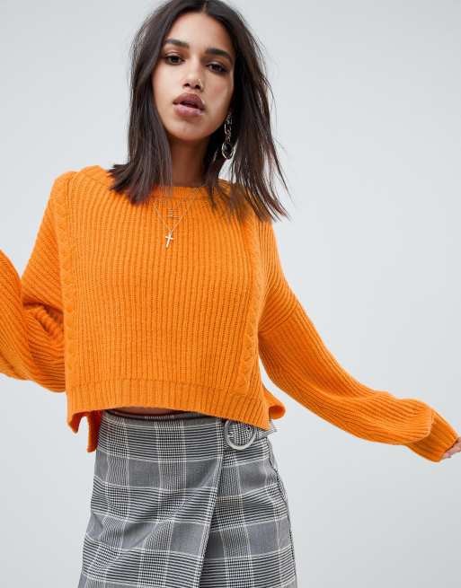 Na Kd Cable Knit Balloon Sleeve Sweater In Orange.